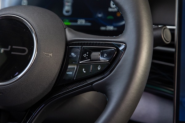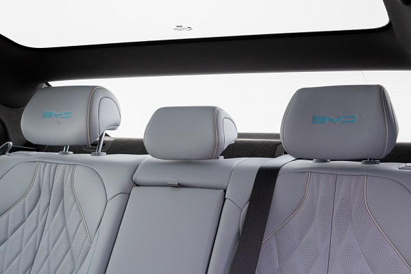 Os bancos dianteiros do Seal têm uma aparência esportiva com estofamento macio e firme e revestimento de extremo bom gosto. O banco do motorista é eletricamente ajustável em oito posições e conta com apoio lombar também ajustável em quatro direções para aliviar a fadiga de viagens longas. O volante permite regulagens em quatro posições.