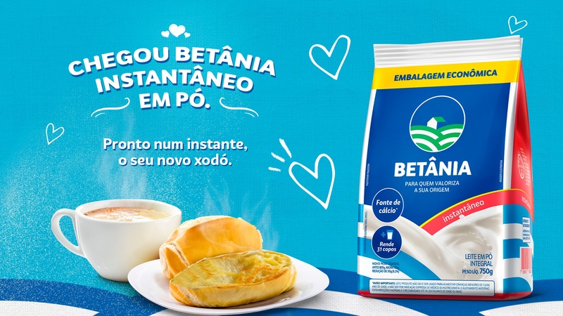 Para marcar a chegada do produto ao mercado, a Betânia lança a campanha “Pronto num instante”, o seu novo xodó, que será realizada no ambiente digital e nos pontos de venda em todo o Nordeste. Desenvolvida pela Next, a campanha destaca toda a praticidade do produto para o dia a dia, trazendo todo o sabor e cremosidade do leite Betânia.