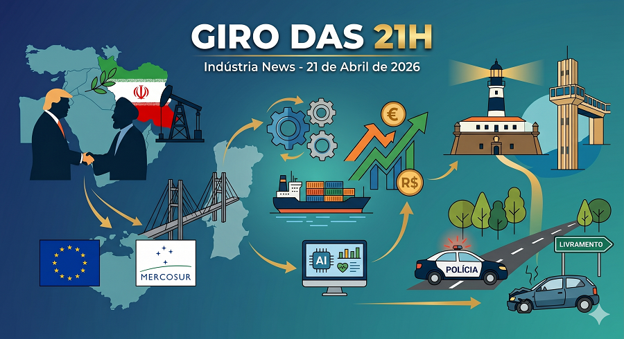 Giro das 21h é produzido pela redação do Indústria News. Atualizado até às 20h30 de 21/4/2026
